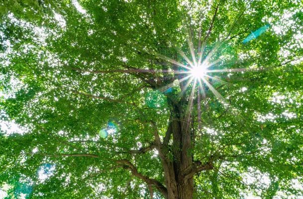 春天,跟着你穿过村子,走到村头那棵最老的银杏树下。看你艰难地攀上树底那个藏青色的石磨,看你紧紧地拽住那垂下的根根枝条,看你用爬满了青筋的枯手小心翼翼地采摘着枝条上的嫩叶。我站在树底,仰望你和你头顶的树叶。我看见你圣洁而专注的脸庞;我看见有阳光从树隙里洒下来,枝子上那些小小的扇形的叶子一簇簇的拥挤着、绽放着,嫩黄嫩黄的叶子就像树窝里那等待着妈妈喂食而迫切张口的一张张小嘴;我还看见新叶上有晶莹的露珠在滚动,我看见所有银杏树的叶子都闪耀着七彩的光。