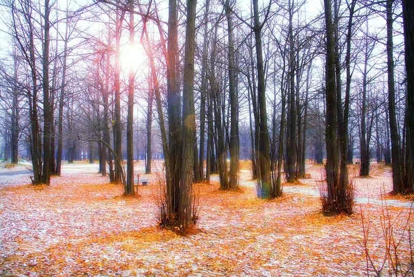 冬天,白茫茫的雪覆盖了大地,田野和村庄。我看见飘飘洒洒的雪花在空中飞扬,我看见远的山近的树都披上了白色的绒毯,我看见掉光了叶子的银杏树上挂满了亮晶晶的银条。我站在银杏树下,四处寻望,却再也找不到到你佝偻瘦小的身影,再也看不到你慈祥温暖的笑容。他们告诉我说,外婆累了,所以睡了。他们把安睡了的你埋葬在山顶的银杏树下,他们还说,有银杏的陪伴,你就不会寂寞。