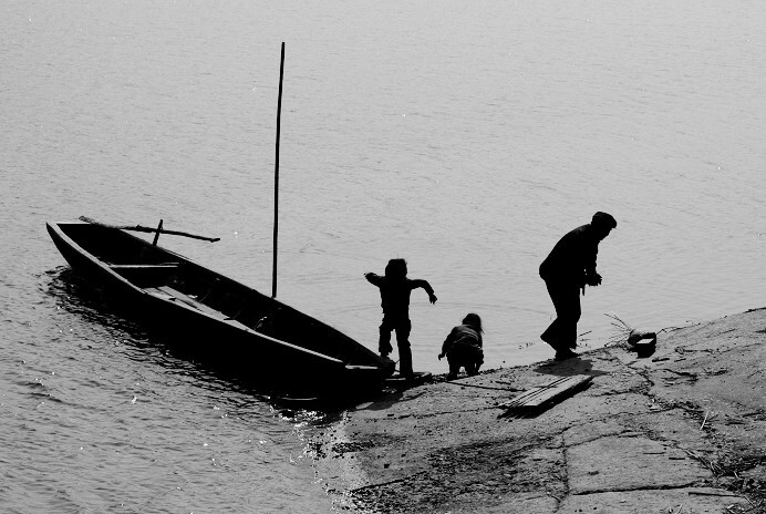 3 不一会,我过完第一个渡口,便踏上了汉北河中间的河滩,这是一片杂草丛生的湿软地带,一条狭长斜向东边的泛白小路连接着另一个摆渡口。 走在湿软的小路上,感觉腿脚有些使不上力气,先前的那股子新鲜劲消耗殆尽。这时,太阳一点点的落山了,河滩上光线逐渐暗淡下来,偌大的河滩竟然只有两三人行走。路边的杂草有的高过我的头顶,阵风吹过,发出窸窸窣窣的声响;一只肥胖的黄鼠狼歘的一声,从前面的荒草中窜出,它居然抬起头,瞟了我一眼,这从闪进一片草苇之中。 太阳落下了,却我的心提到嗓子眼。向前走,可天黑之前估计很难走到;向回走,会被父亲笑话,或许要挨骂,说不定渡口都撤了,回都回不成了。怎么办?向前还是向后?我仿佛站在命的十字路口,在做一个生死攸关的决定…… 没有时间再犹豫了,豁出去了,向前走!于是,我立即爬坡向前,来到了汉北河的南堤上。