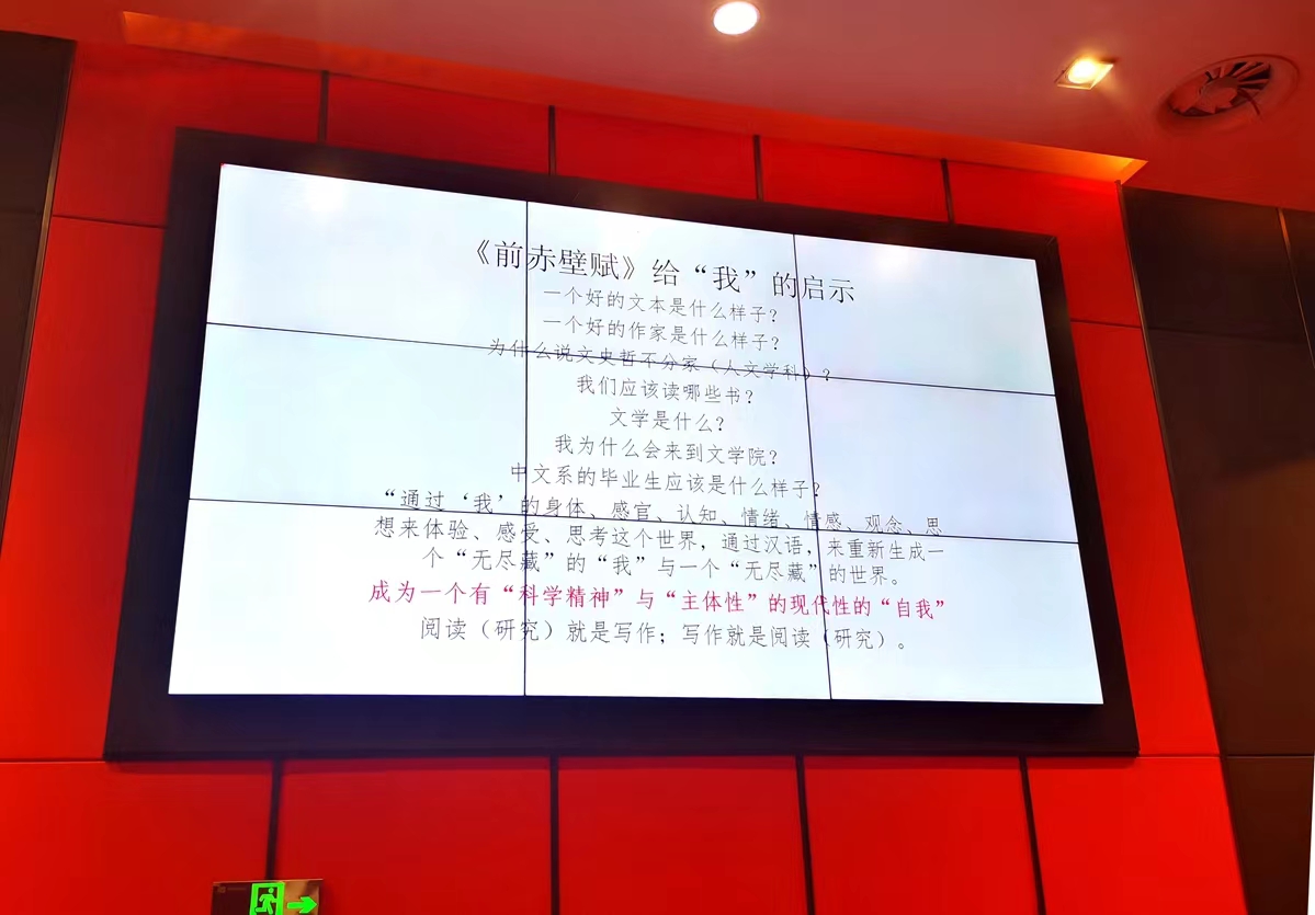 在中华民族浩瀚的文化星空中,作为诗、词、散文、书法、绘画等集大成者的北宋文豪苏轼,无疑是最耀眼的星星而始终备受追捧经久不衰。舒飞廉先生在《苏轼<前赤壁赋>赏析》中,讲述了苏轼波澜起伏的生平历史;在声情并茂地诵读了《前赤壁赋》后,逐段逐句逐字对全文进行解读;同时,通过自己总结出的关于苏轼的一个“五”的复杂框架做了精细解构;最后在“《前赤壁赋》给我的启示”中,分享了“成为一个有科学精神与主体性的现代性的自我”体会与大家共勉。讲座的末尾阶段,舒飞廉先生还热情地与大家进行了互动交流,逐一解答学员提出的相关苏轼文学话题。