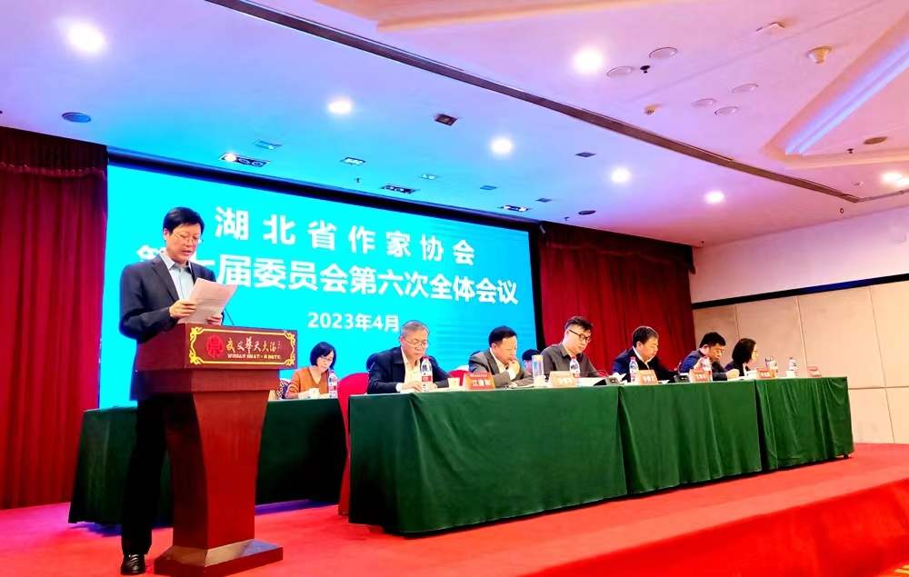 (本网讯)4月15日,湖北省作协七届六次全委会在武汉召开。会议高举习近平新时代中国特色社会主义思想伟大旗帜,深入学习贯彻党的二十大精神和湖北省第十二次党代会、中国作协十届二次全委会精神,总结湖北省作协2022年以来的工作,部署2023年任务,审议通过了《湖北省作协七届六次全委会工作报告》。省作协主席李修文主持会议,省作协七届主席团成员、委员会委员,湖北省作协各部室、直属单位负责人参加会议。省作协七届全委会委员、孝感市作协主席方东明、副主席周芳、张驰鹏一同前往武汉参加会议。