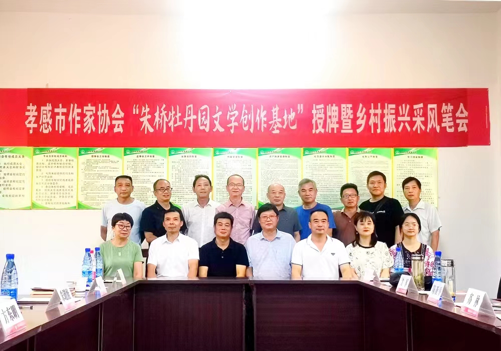 8月12日,由孝感市作家协会、安陆市作家协会与湖北长生堂高新农业有限责任公司联合举办的“朱桥牡丹园文学创作基地”授牌暨乡村振兴采风笔会在安陆市王义贞镇朱桥村朱桥牡丹园举行。孝感市、安陆市作家协会主席团部分成员及作家代表和特邀嘉宾,湖北长生堂高新农业有限责任公司主要负责人,安陆市新闻媒体等近20人参加活动。