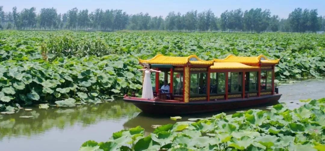接天莲叶无穷碧,映日荷花别样红。片片荡漾在碧波之上的精灵,如亭如盖,娉娉婷婷。伸手采一朵莲花,低头轻嗅间,那淡淡的清香便氤氲满怀。率性的梅赞兄信手摘一片斗大的荷叶戴在头上,我用荷茎轻轻挑起一角,雪儿的歌声随即在船头飘荡:掀起你的盖头来,让我来看看你的眼,你的眼睛明又亮呀,就像那秋波一个样……歌声伴着笑声在湖面跳跃蹁跹,如仙境梦游一般,竟让人生出一种恍若隔世之感。