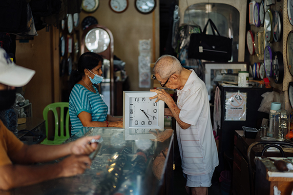昨天从街上经过,看见商场门前那位修钟表的师傅还在摆摊,让我很是吃惊!现在智能手机“干掉了”很多行业,可谓“一机在手,应有尽有”,戴手表的人越来越少,他的摊位应该不会有什么生意,我真不知道他是怎么坚持下来的?从我刚参加工作、甚至更早,他就在这里摆摊,一晃30年过去了,望着他满头白发依然在此坚守,俨然成为商场门前的一座标配,心中油然而生敬意。