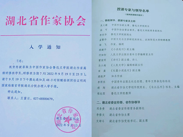 我市五位作家参加鲁迅文学院湖北作家高级研修班学习