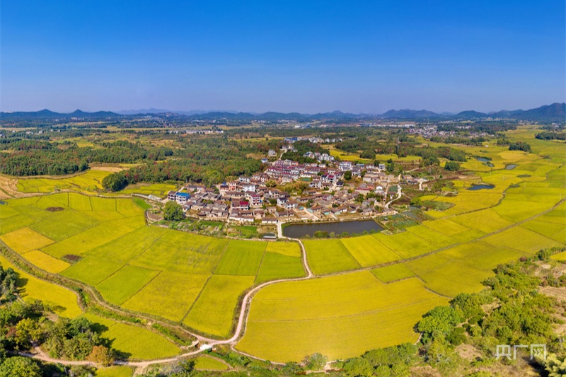金秋十月,天高云淡,乡村美丽,风景如画。团山村更是秋意浓浓,生机勃勃。稻田里一片黄澄澄的稻谷随着秋风翻起金波,绿油油的菜地里肥嫩的菜叶上闪耀着晶莹的露珠,漫山遍野的红叶给秋天的生命渲染了炫目的色彩。