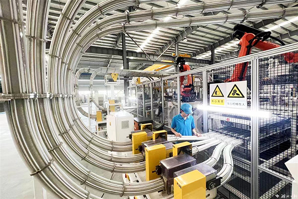 当走进湖北好莱客创意家居有限公司的生产车间,看到现代化的流水线上,无数智能机器人有条不紊地按照程序操作时,大家都感受到科技赋能带来的震撼,据悉,该公司在新一代智能信息化技术的深度融合中走上高质量发展新路,项目全部建成投产后,预计年生产定制家居智产柜体、橱柜、木门2500万平方米,实现年销售额45亿元。