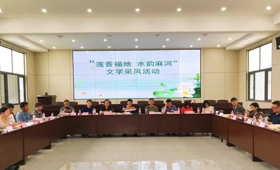 活动期间,一行人还围绕“莲香福地 水韵麻河”主题进行座谈交流。麻河镇党委书记张成对采风团一行的到来表示热烈欢迎,同时向大家介绍了麻河镇经济社会发展和文化建设情况。易飞、王新才、邱红根、张艳等知名诗人、专家学者就麻河镇生态环境、人文景观,以及诗词写作等方面进行了交流发言,大家广开言路,谈收获、谈思路、谈经验,为本次采风活动画上圆满句号。