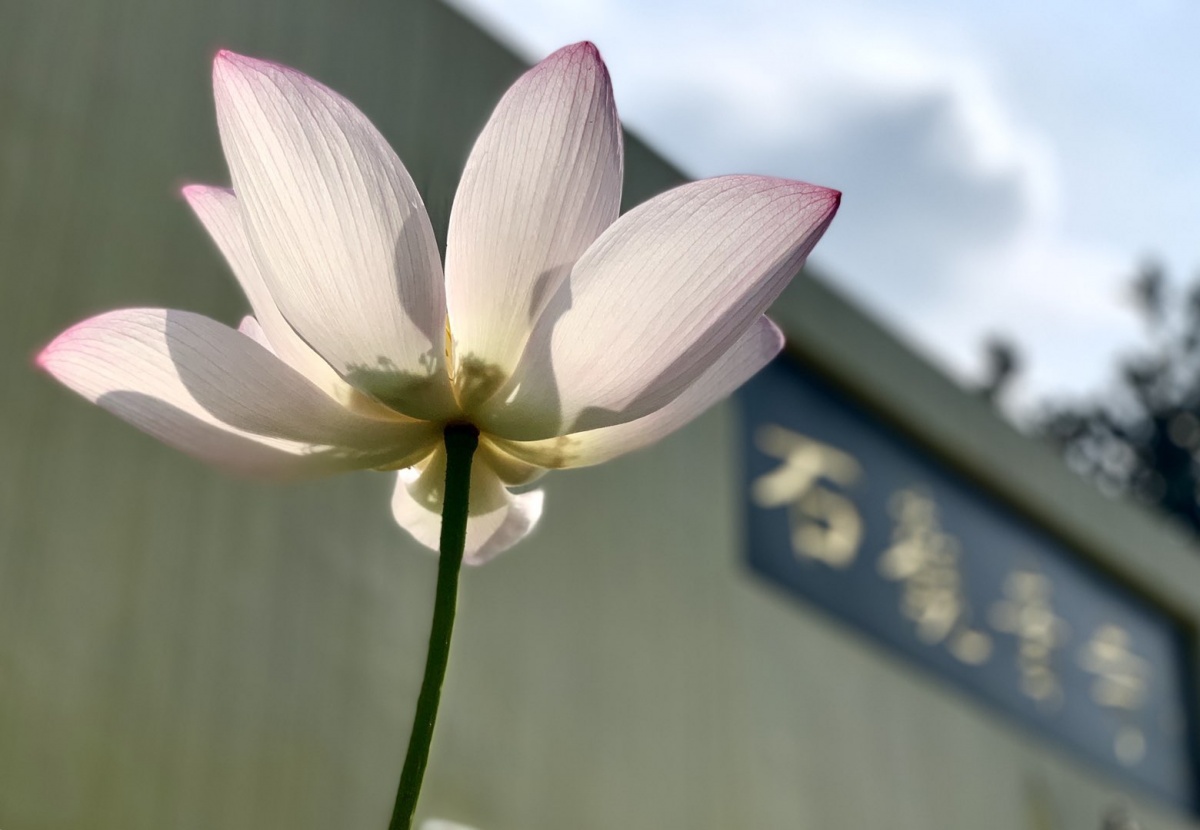 在石观音寺年轻的僧人正午的大太阳下,行走身着长袍不打伞不戴帽,他说不晒哲学博士毕业因为信奉,来这里修行池中千叶莲开得正盛好像迎接我们一株青莲早上也正好开了我们雀跃,赏花拍照,完全没有膜拜、敬畏的样子烈日下一行人打伞的,不打伞的裸露的手臂,忽然瘙痒