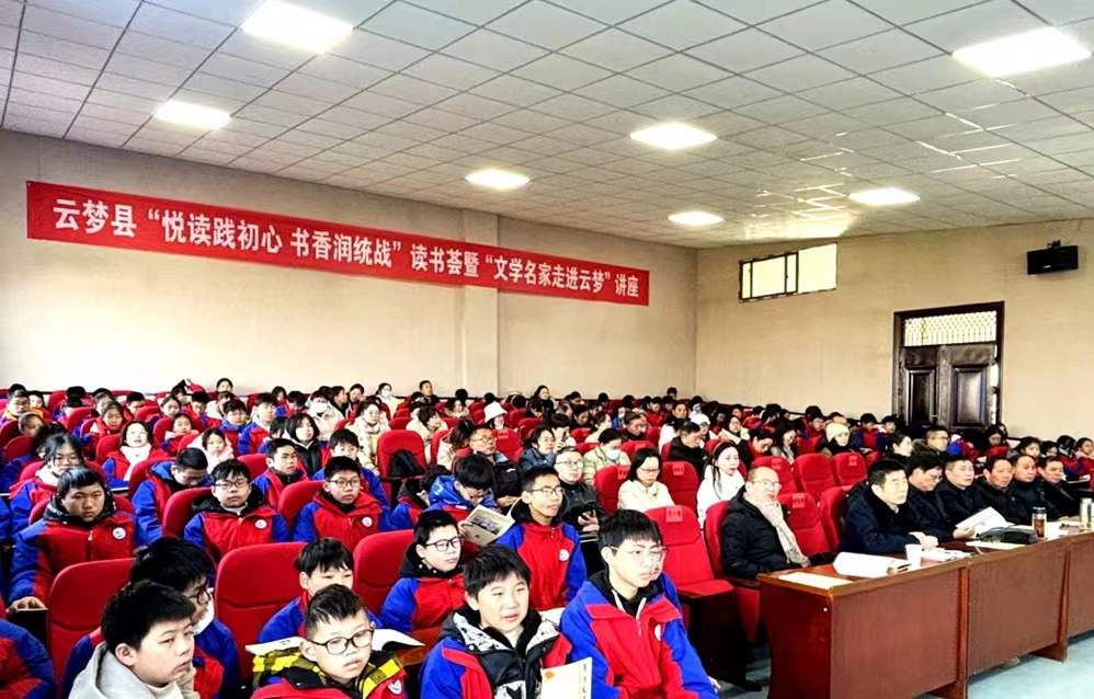 12月19日,由云梦县委统战部、县文联联合主办,县作协和知联会承办的“悦读践初心·书香润统战”读书荟暨“文学名家走进云梦”活动在云梦县宏哲学校举行。孝感市作家协会及各县市区作协部分作家应邀参加活动,云梦县委统战部相关领导、知联会部分代表,云梦县文联、作协负责人和部分会员,以及宏哲学校师生近200人一同参加活动。本次活动特邀孝感市文联副主席、作协副主席、知名作家周芳进行关于阅读与写作的交流分享。