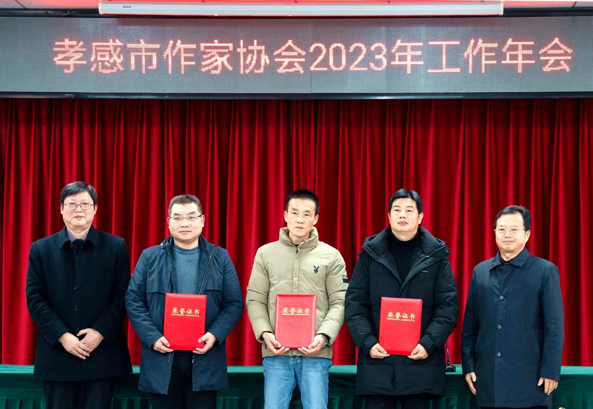 他最后在展望新年工作时表示,孝感作协将继续砥砺前行,坚定不移地用习近平新时代中国特色社会主义思想凝心铸魂,紧紧围绕市委市政府的中心主题开展文学活动,围绕新时代山乡巨变创作主题抒写时代发展,围绕孝感市重大主题开展文学作品大赛,围绕“文学进校园”加强青少年文学人才发现和培养,围绕服务创作进行作品研讨和文学辅导,为推动孝感高质量发展,打造武汉都市圈重要节点城市贡献文学力量。 随后,市作协主席团成员、各县市区作协负责人围绕作协工作报告及2024年工作进行了发言。2023年度获奖先进代表在颁奖仪式后发表了获奖感言。