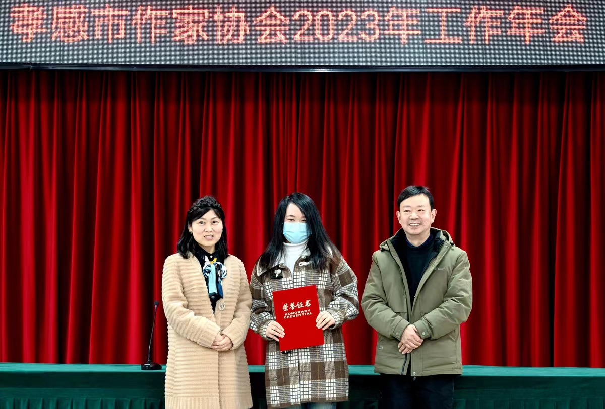 市文联副主席、作协副主席周芳说,作为市作协团队一员,我为2023年取得的骄人成绩倍感自豪。在主持的《槐荫文学》散文栏目中,紧扣建市三十周年节点精心组稿,讲述孝感故事。同时加强与联系点云梦作协的工作联系。新一年工作将更加奋发有为,为孝感文学事业争光添彩。 市作协副主席万雁说,过去的一年,孝感文坛喜事连连,丰富多彩的文学活动激发了大家的创作热情。5名作家加入中国作协、《槐荫文学》首次荣获湖北文学奖等10件大事极大地提振了孝感作者的自信心。作为孝感作协的一员,我感到由衷的高兴和骄傲。新的一年,可以做得更多更好!