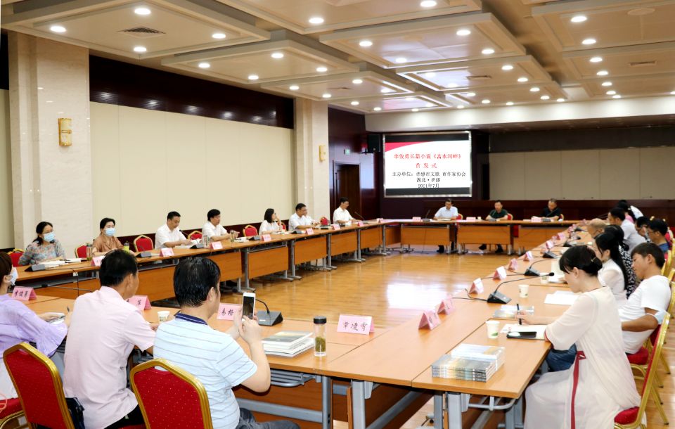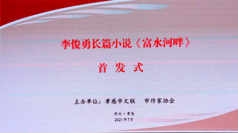 (本网讯)7月30日下午,由孝感市文联、市作家协会主办的李俊勇长篇小说《富水河畔》首发式在孝感市行政会议中心举行。湖北省作协副主席、著名评论家刘川鄂,省作协党组成员、秘书长沈小群,《湖北日报》高级记者、作家易飞,市委宣传部副部长晏鹏,市文联党组书记、主席熊德琪出席会议并讲话。省作协创研室副主任谢铮、市文联党组成员、副主席沈腊梅一同出席,孝感市作协主席团成员、秘书处成员以及来自全市的作家代表30余人参加了首发式。