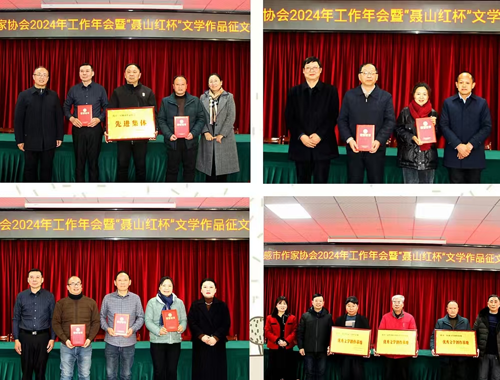 在进行的年度先进表彰会上,市作协副主席兼秘书长朱道能宣读表彰决定和颁奖词,与会领导、嘉宾分别为2024年度作协工作先进奖、年度文学创作贡献奖、年度优秀文学作品集、年度优秀文学新人奖、年度优秀文学品牌奖、年度优秀文学创作基地等六个门类的获奖对象分别颁奖。李汉超、万清平、周毓麟、刘志平等同志作为年度先进代表分别发表了获奖感言。