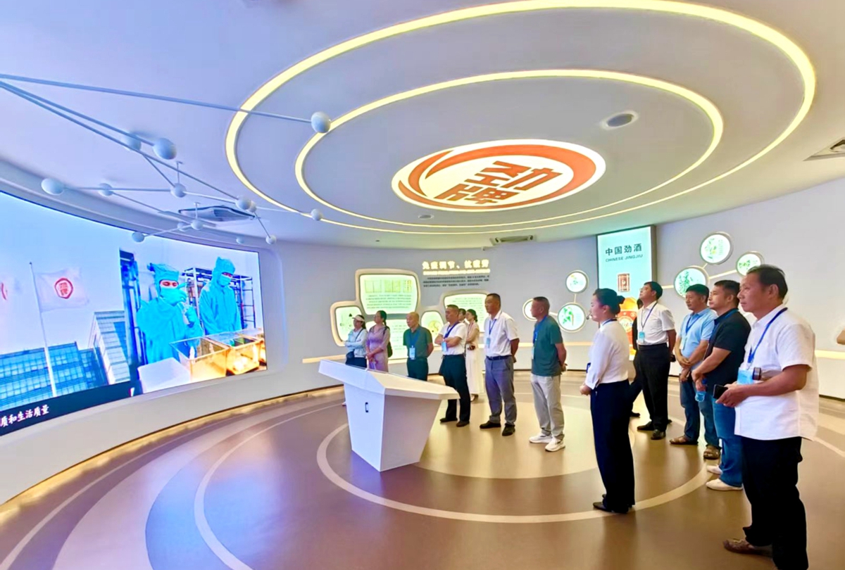 21日下午,作家们在讲解员的引领下,步入现代感十足的劲牌展馆。这里不仅是产品的陈列,更是一部用时间酿就的企业史诗。光影交错间,一幅幅老照片讲述着从1953年走来的创业艰辛;一组组数据,铭刻着从一个小作坊到健康食品行业的领军者的辉煌历程。作家们驻足于企业展墙前,细细品读“树正气、有担当、可持续”的核心理念,真切感受劲牌企业的责任与担当。
