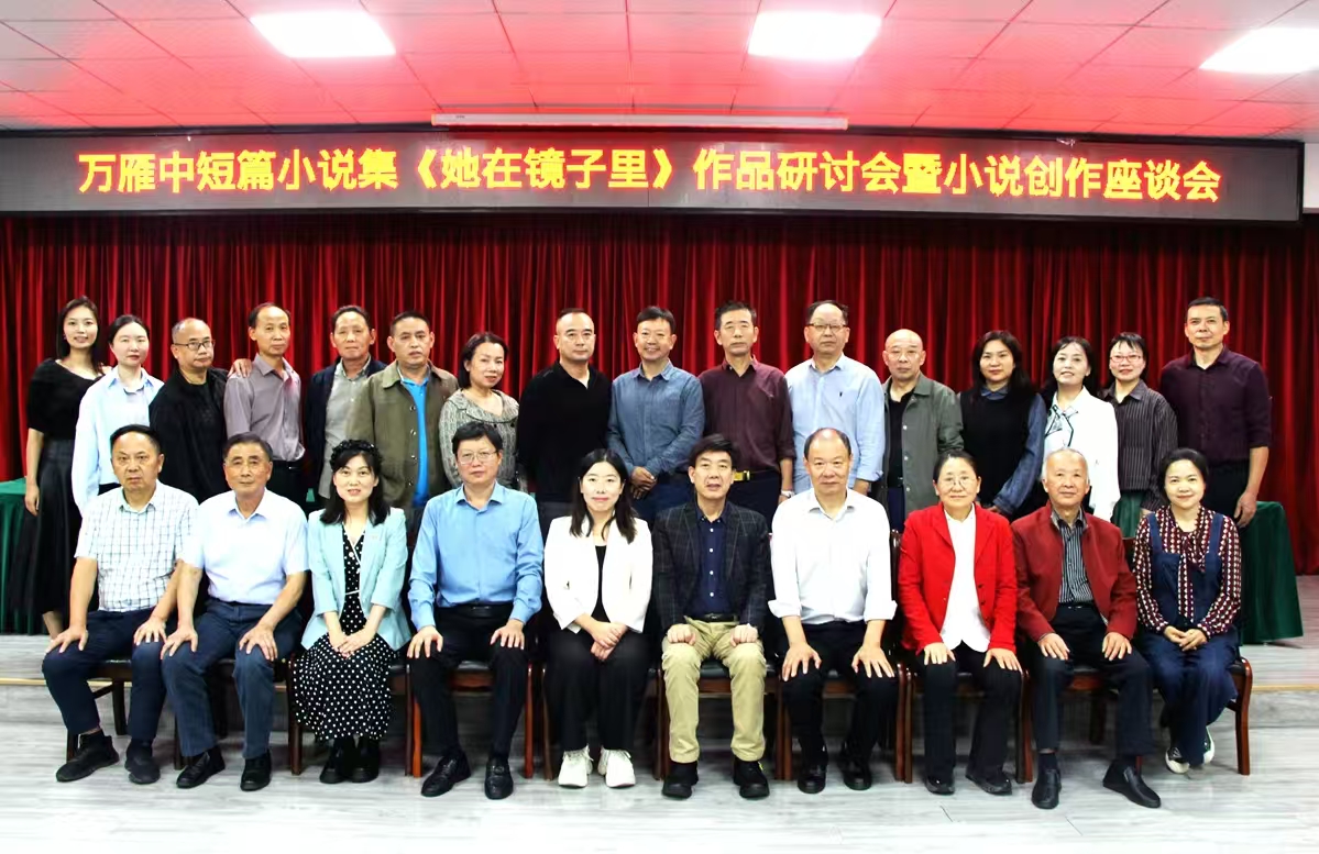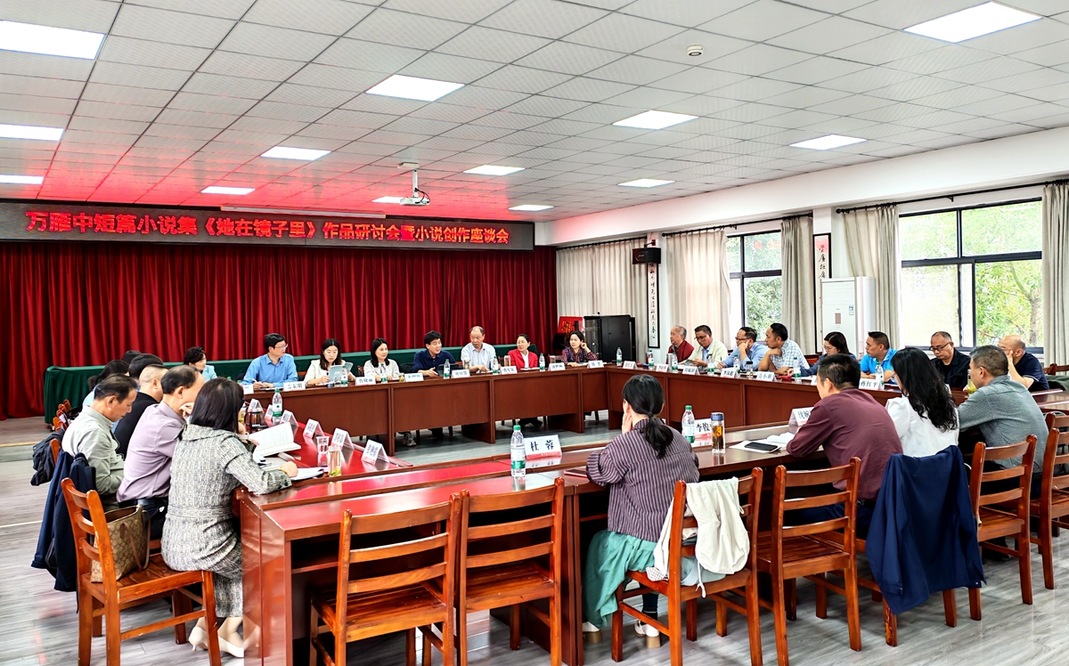 (本网讯)一篇镜像照尘世,满座高朋论雅文。10月12日,由孝感市文联、市作协联合主办的万雁中短篇小说集《她在镜子里》作品研讨会暨小说创作座谈会,在孝感老市委大院会议室成功举办。来自湖北省的特邀专家、嘉宾,市文联与作协相关领导及作家代表济济一堂,围绕该作品集的文学特色、创作技巧与思想内涵等展开深入研讨。