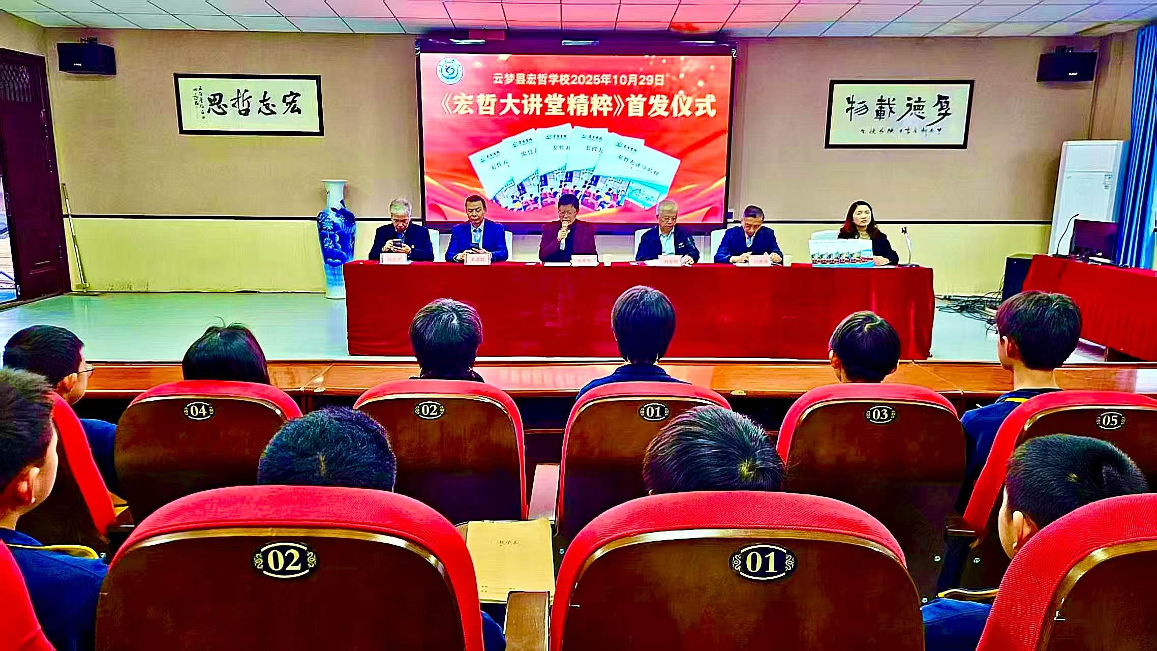 云梦宏哲学校作为孝感市作家协会授牌的首家“青少年文学写作基地”,长期以来积极推动文化素质教育,先后邀请方东明、周芳、朱道能等作家走进“宏哲大讲堂”,开展多场文学讲座。这些讲座内容经整理编辑,最终汇集《宏哲大讲堂精粹》一书中。仪式上,宏哲学校刘书记在致辞中表示,该书的出版不仅是学校文化建设的标志性成果,更是献给全体宏哲学子的一份思想厚礼,希望它能“为青春开一扇眺望世界的窗”。