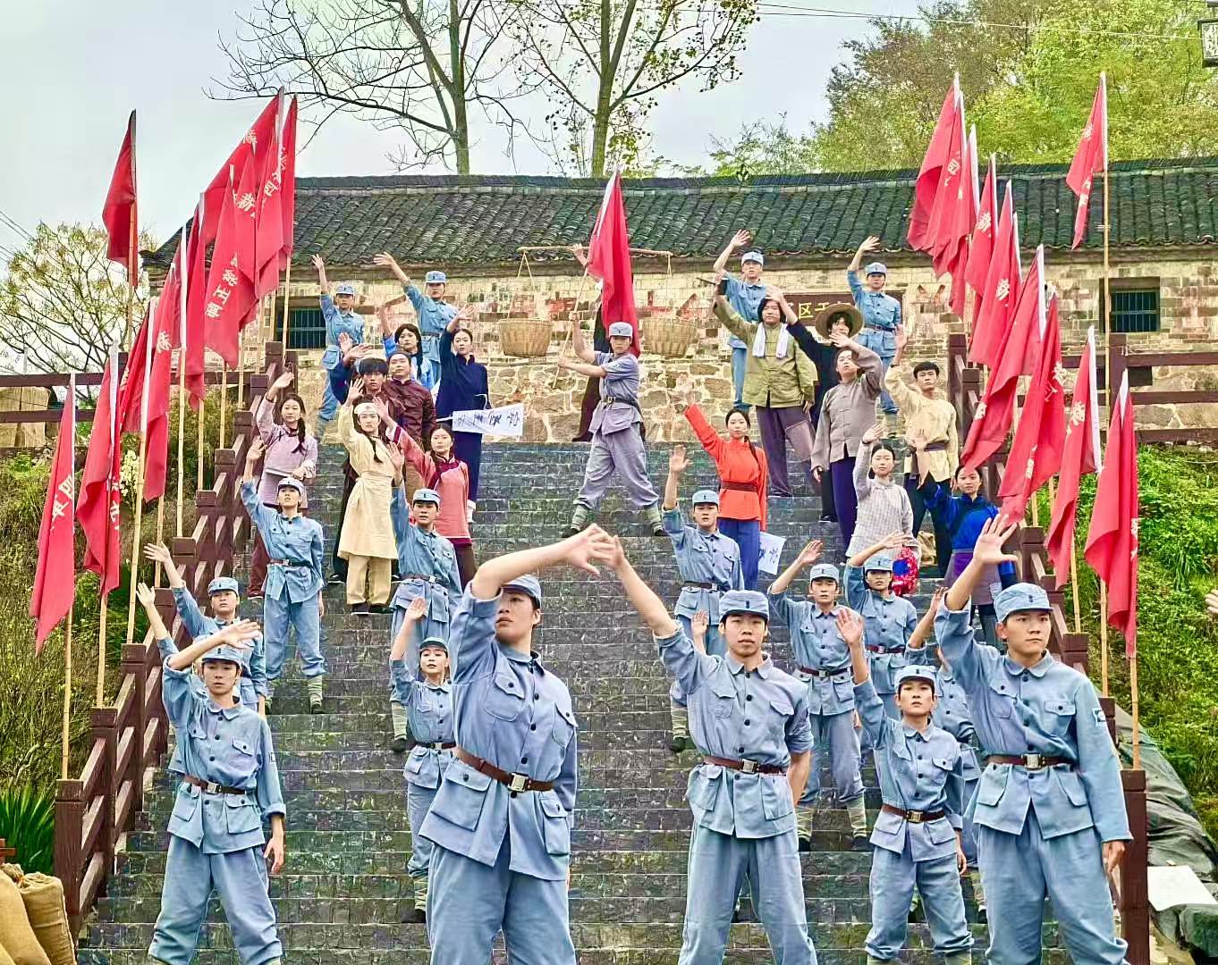 本次活动行程紧凑、内容丰实。作家团首站抵达历史底蕴深厚的宣化店镇,依次走访宣化店红街与中原军区司令部旧址。在庄严肃穆的革命遗迹前,作家们通过详实的史料与珍贵的革命文物,深切感悟“中原突围”那段烽火岁月与坚定信念。随后,作家集体观看了大型行进式红色情景剧《1946中原突围》。演出在复原历史的舞台场景中展开,演员们以极具张力的表演重现了那段风雨如磐的峥嵘历程。剧中人物的坚定信念、牺牲精神与家国情怀,通过一幕幕动人情节真实可感地呈现出来。这场沉浸式的艺术演绎,不仅再现了历史现场,更让作家们从情感深处与革命先辈完成了一次跨越时空的对话。