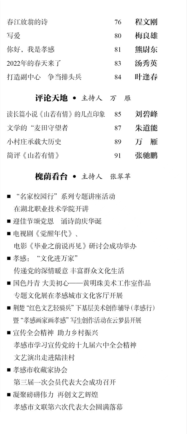 2022年《槐荫文学》第1期目录