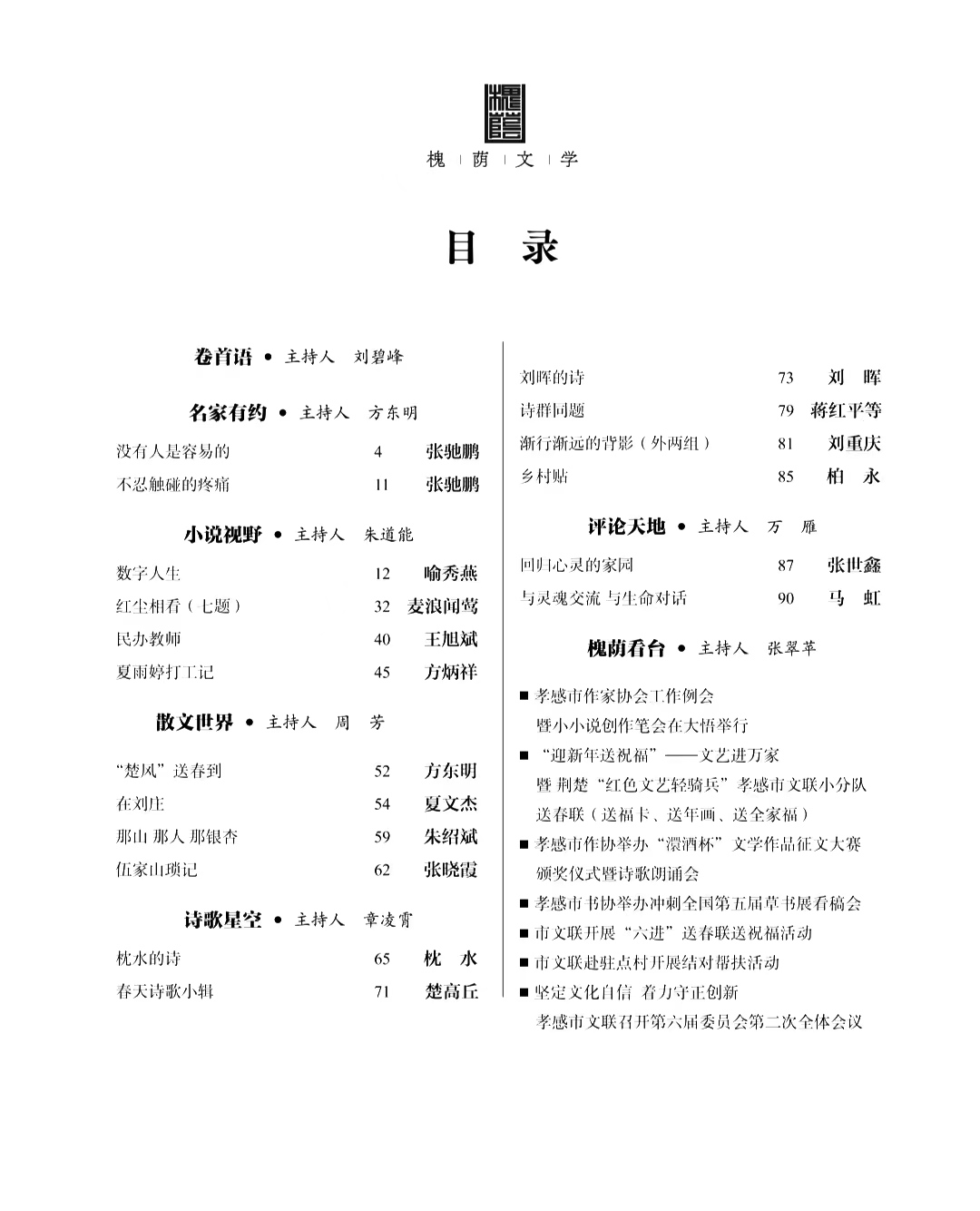2022年《槐荫文学》第2期目录